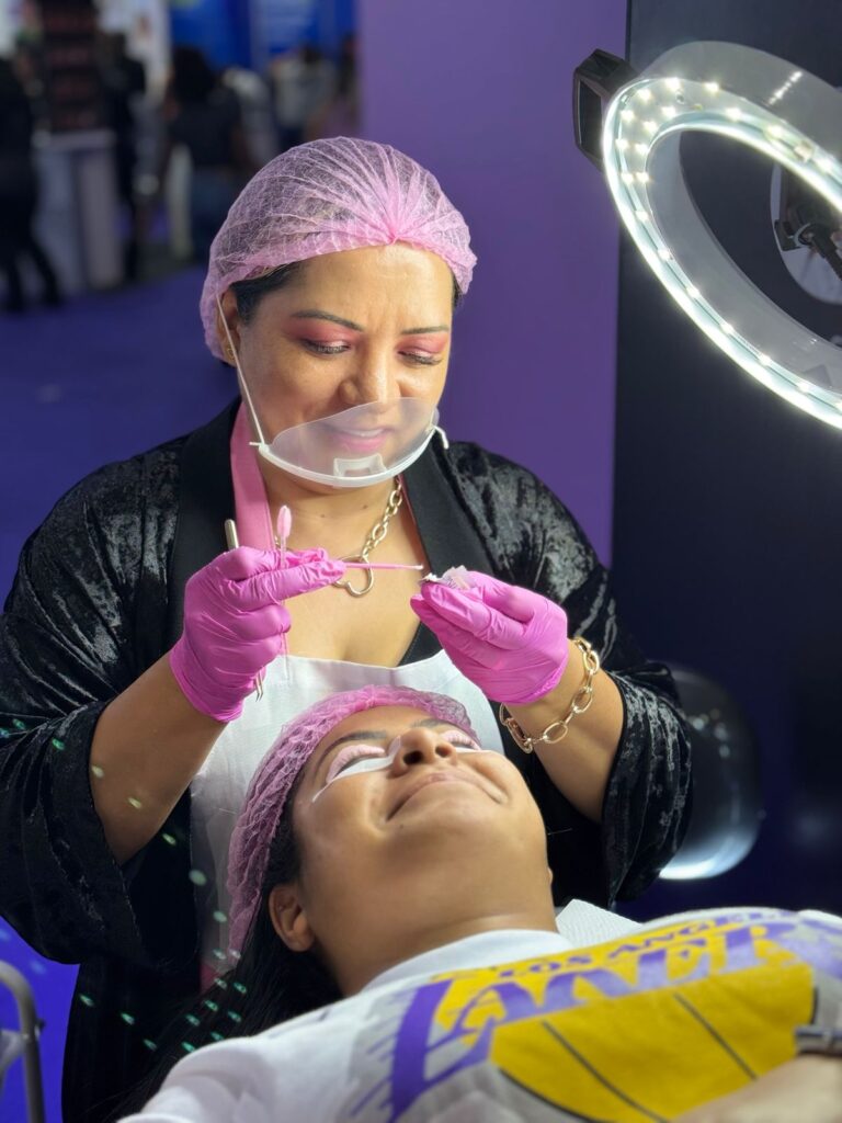 Educadora da área beleza trouxe técnicas de extensão de cílios no maior evento do setor na América Latina